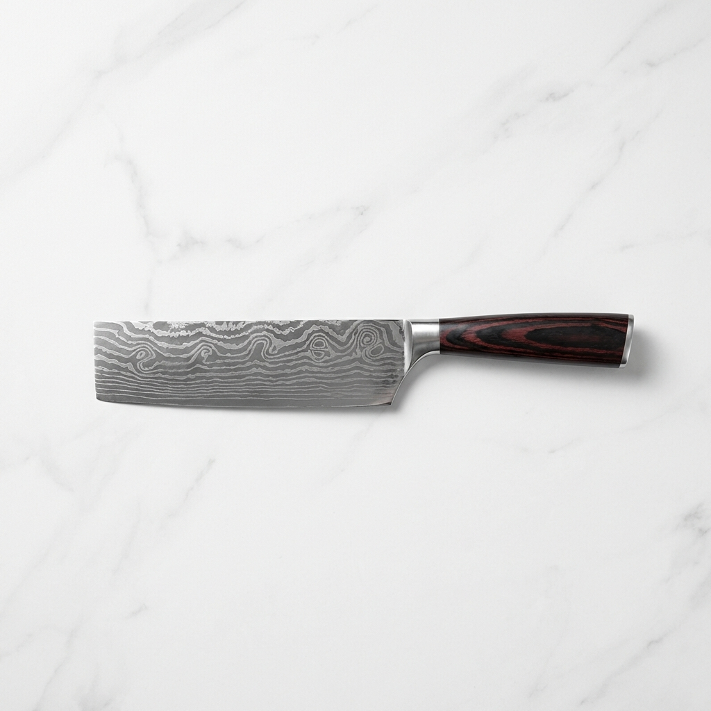 Daichi Nakiri – A beautiful, hard‑working cleaver crafted from hand‑forged Damascus steel with a wave‑patterned blade. Smooth, confident cuts made easy for everyday cooking or gifting.